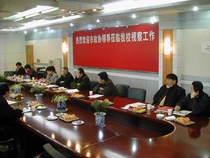 2004年12月29日下午,市政協(xié)袁達明副主席、許國權(quán)主任帶領(lǐng)市政協(xié)教科文衛(wèi)專委會會員一行九人到瀘州高中視察。市政協(xié)副主席袁達明首先作重要講話,感謝專委會全體會員一年來的辛勤工作,祝賀瀘州高中近年來取得巨大成績。瀘州高中副校長吳浩錫代表學(xué)校向政協(xié)各位領(lǐng)導(dǎo)匯報工作,瀘州市教育局紀(jì)委書記劉林作關(guān)于“一費制”工作匯報。市政協(xié)許國權(quán)主任作總結(jié)發(fā)言,高度評價瀘州高中近年來發(fā)展很快,對于瀘州高中發(fā)展中存在的具體困難盡力建言獻策,積極支持瀘州高中的快速發(fā)展。會后,政協(xié)委員們參觀了瀘高校史陳列室、恒溫游泳館。