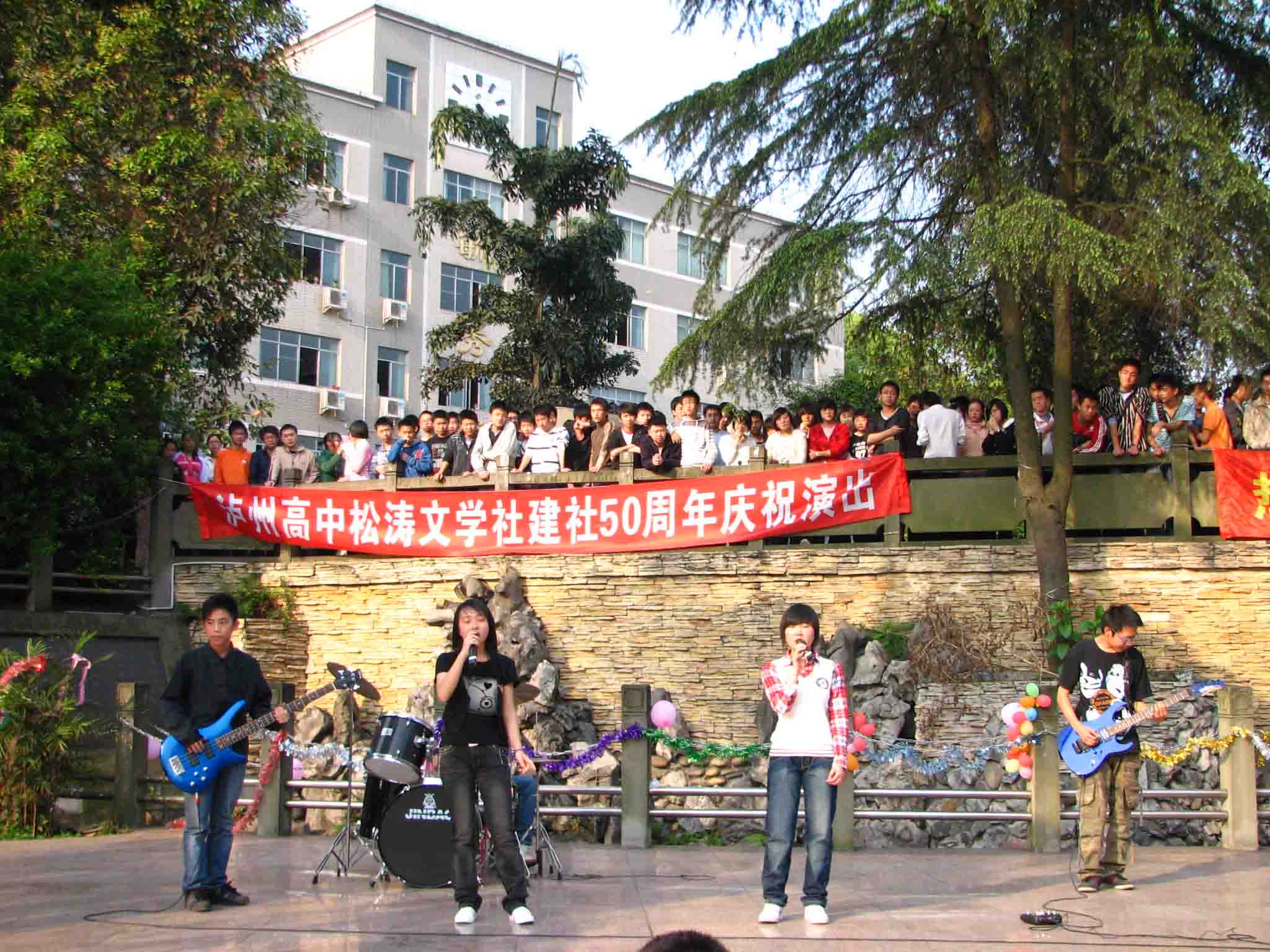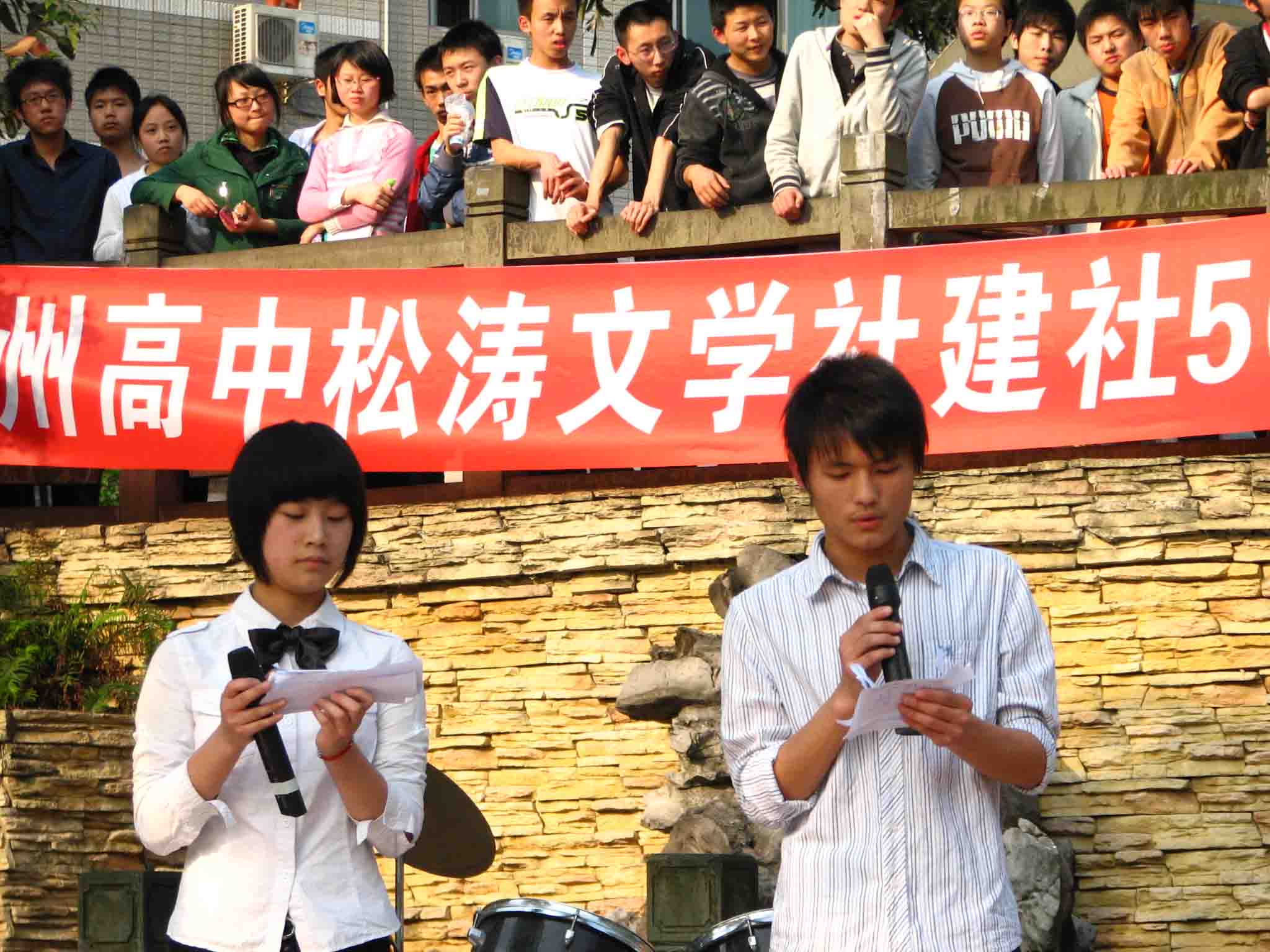 4月7日,瀘州高中松濤文學(xué)社在校園曲水廣場舉行五十周年社慶文藝演出,副校長王曉榮出席講話表示熱烈祝賀。之前,文藝界知名人士韓寒、朱先樹等紛紛發(fā)來賀詞,祝愿松濤文學(xué)社的青年學(xué)子們能在人生的白紙上譜寫出最璀璨的華章。文藝節(jié)目形式多樣,松濤文學(xué)社的學(xué)子們多才多藝,讓人叫好不絕。(國是)