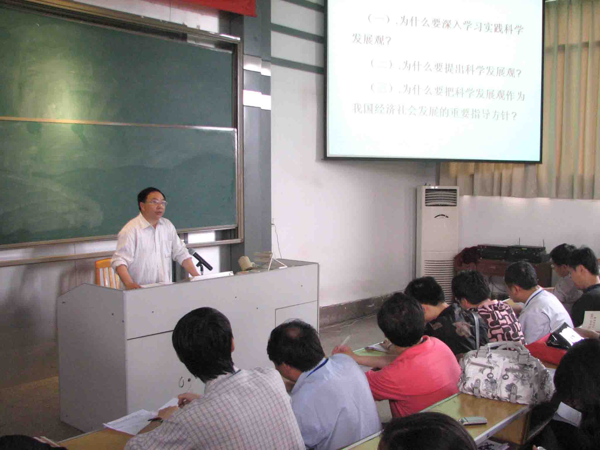 楊亞光向參會(huì)人員激情充沛地宣講了“為什么要學(xué)習(xí)科學(xué)發(fā)展觀”,“全面把握科學(xué)發(fā)展觀的內(nèi)涵和精神實(shí)質(zhì)”,“通過學(xué)習(xí)實(shí)踐活動(dòng)把科學(xué)發(fā)展觀理論提高到新水平”等三個(gè)問題。報(bào)告為參會(huì)人員指出了教育發(fā)展中存在的教育結(jié)構(gòu)、教育功能、教育理念等方面的弊端,強(qiáng)調(diào)科學(xué)發(fā)展觀是解決問題、克服弊端的指導(dǎo)思想和有力武器,教育工作者應(yīng)當(dāng)正確把握科學(xué)發(fā)展觀“第一要義是發(fā)展”、“核心是以人為本”的問題,通過找結(jié)合點(diǎn)和抓關(guān)鍵,確??茖W(xué)發(fā)展觀學(xué)習(xí)實(shí)踐活動(dòng)見實(shí)效,促進(jìn)教育事業(yè)科學(xué)發(fā)展,和諧發(fā)展,又好又快發(fā)展。
