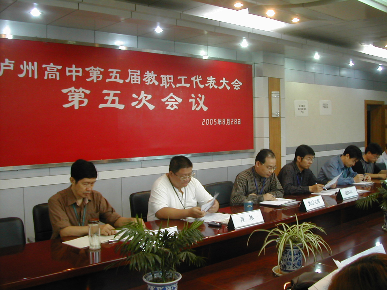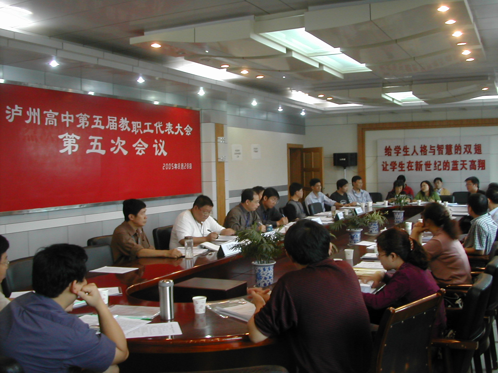8月28日,瀘州高中召第五屆教職工代表大會第五次會議,出席會議正式代表35人,列席代表10人,特邀代表3人。會議首先聽取肖林校長關于2004-2005學年度下期學校工作報告,報告主要總結一學期學校工作,取得的成績,存在的問題,下期學校工作打算。肖校長在報告中著重強調,在學校前期硬件建設已基本告一段落后,學校要重點抓好軟實力的提高,即努力提高核心競爭力,提高干部隊伍和教師隊伍的綜合實力;加強管理促進效益,要加強學習,全面提升策劃、決策、執(zhí)行能力;通過體制創(chuàng)新,產(chǎn)生活力;通過建立良好的人文環(huán)境,樹立良好的團隊協(xié)作精神,使人際關系簡單化。提倡“愛崗敬業(yè)、愛校如家、愛生如子、樂于奉獻”的瀘高校園精神。大會還對肖校長的工作報告進行審議,最后全票贊成獲得通過。其次,分三個小組對涉及學校各方面工作的十一個議案進行討論。代表們暢所欲言,積極獻計獻策,會議開得園滿成功。 (羅德強)