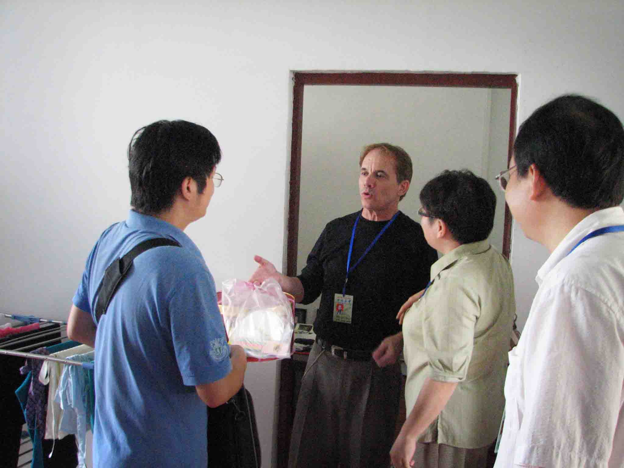 “嗨,你好!Happy Birthday,Dr.Ray!”9月23日,美國(guó)籍英語(yǔ)教師Dr.Ray(雷博士)過(guò)第一個(gè)生日,瀘州高中外事辦主任羅德強(qiáng)、副主任羅紅兵一行提上生日蛋糕給他送上一陣驚喜。