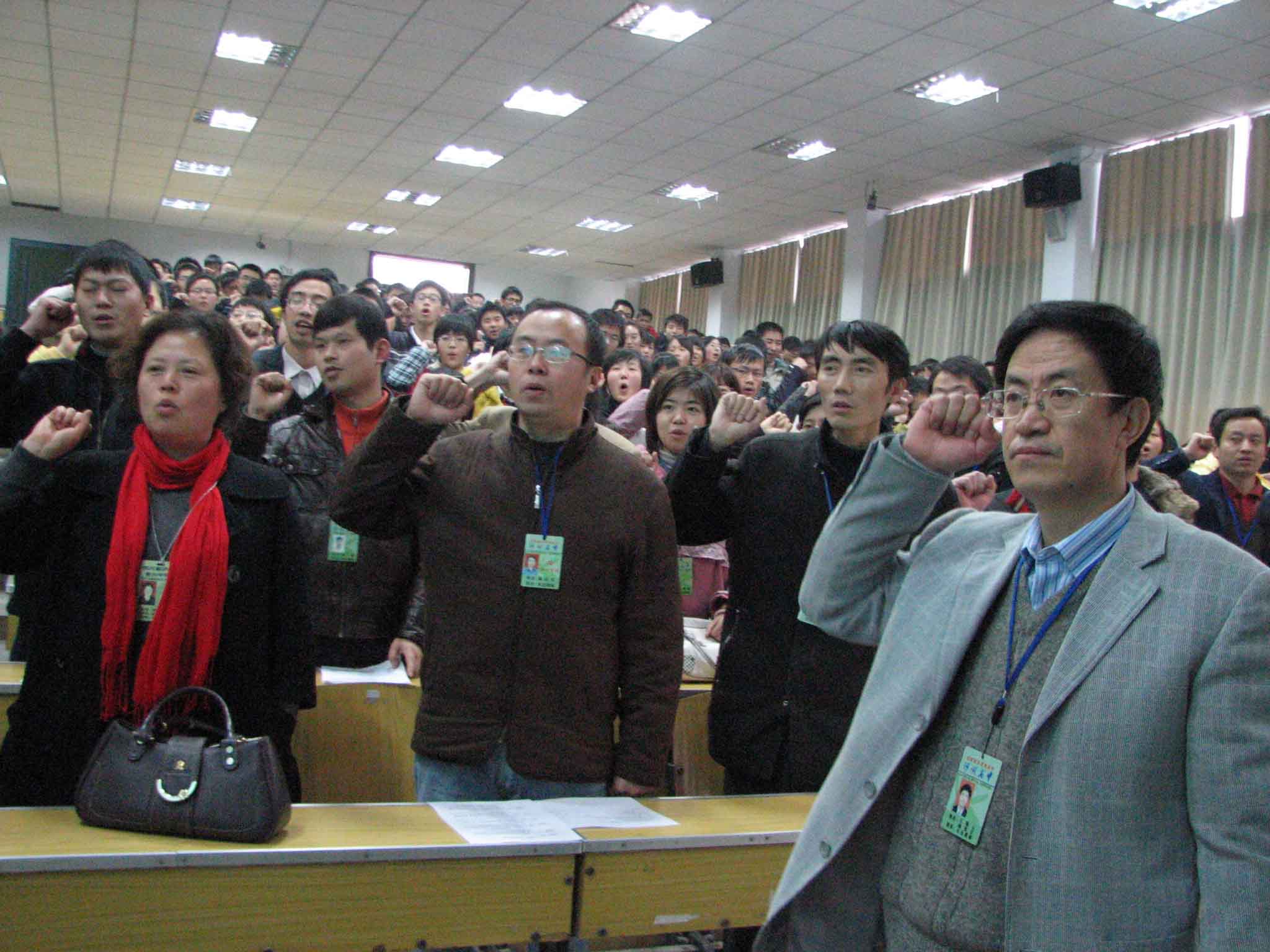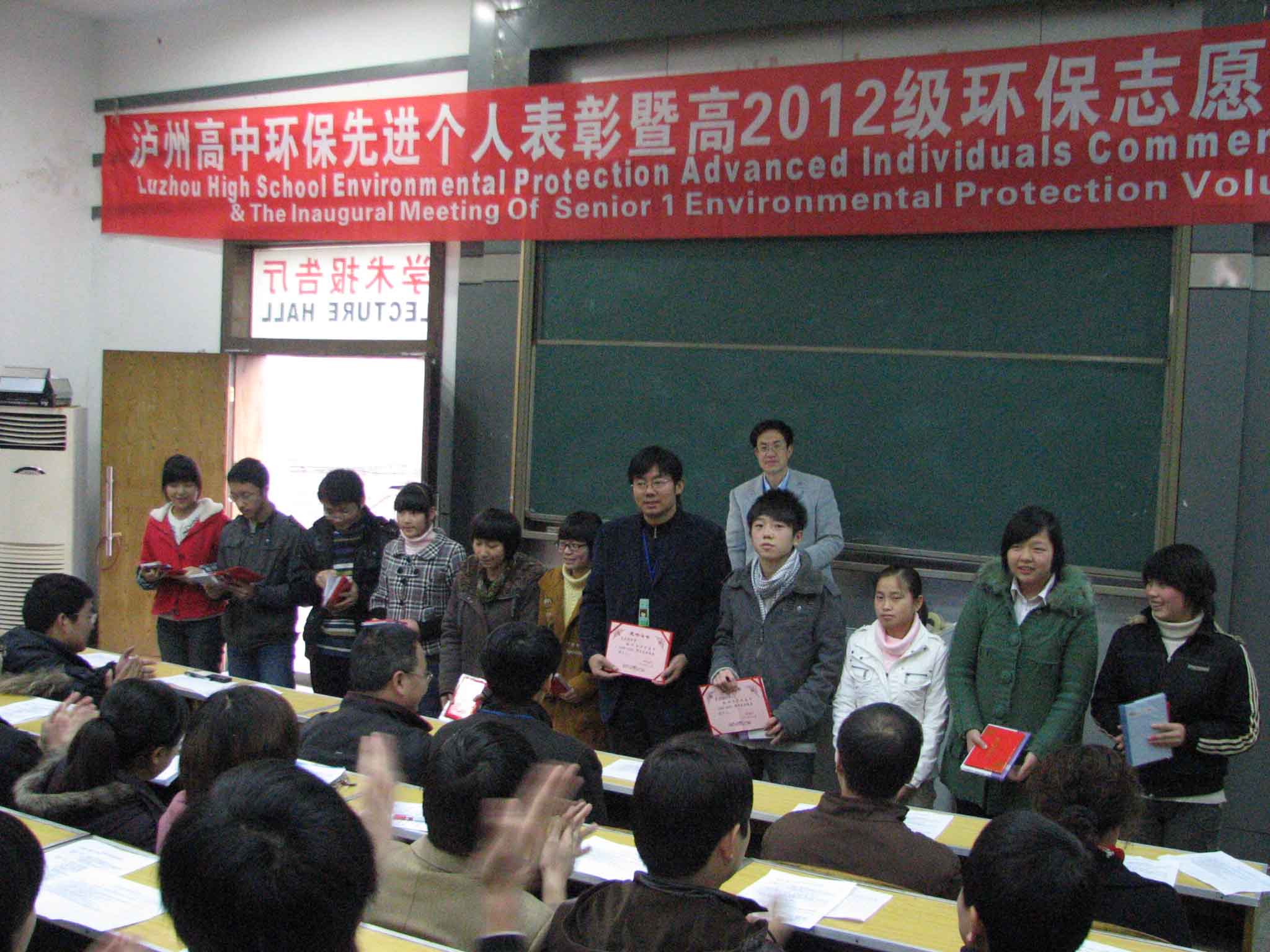 這是瀘州高中繼創(chuàng)建成省級“綠色學(xué)?!焙螅M(jìn)一步將此項(xiàng)創(chuàng)建工作推向更高臺階的重要舉措。趙曉林在作動員報告時,強(qiáng)調(diào)了開展環(huán)保教育、創(chuàng)建綠色學(xué)校的重要性,對開展綠色教育、綠色實(shí)踐和綠色校園建設(shè)等活動提出了要求。會議散發(fā)了《國家級‘綠色學(xué)校’評估驗(yàn)收指標(biāo)(試行)》表,落實(shí)了志愿者各類人員的分工和職責(zé),并對環(huán)保工作先進(jìn)個人進(jìn)行了表彰。隨后,全體與會人員挺直站立,舉起右手莊嚴(yán)宣誓:“從我做起,從每件小事做起……為把瀘州高中建設(shè)成為國家級綠色學(xué)校而努力?!保ㄍ辏?/SPAN>