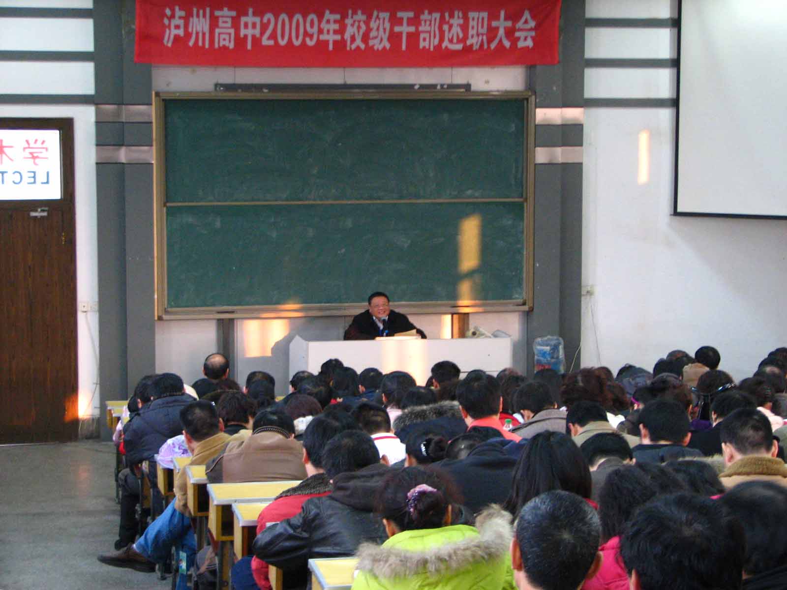 黨總支書(shū)記、校長(zhǎng)肖林在述職時(shí)采用在校園中最為流行的“科學(xué)發(fā)展觀”、“旅游雙飛”、 “勞動(dòng)實(shí)踐基地”、“一二三類(lèi)學(xué)生公寓”、“小精班”、“副會(huì)長(zhǎng)學(xué)?!?、“高溫甲流”、“該咋樣的就咋樣”等8個(gè)詞語(yǔ)來(lái)描述瀘州高中在2009年的發(fā)展?fàn)顩r和所面臨的挑戰(zhàn),他認(rèn)為09年對(duì)瀘州高中來(lái)說(shuō)是艱辛曲折的一年,但由于全體教職工辛勤勞動(dòng)、精誠(chéng)團(tuán)結(jié)、顧全大局、無(wú)私奉獻(xiàn),戰(zhàn)勝前進(jìn)道路上的各種困難,高考成績(jī)?cè)賱?chuàng)輝煌,向全市人民交了滿(mǎn)意的答卷;在分層次教學(xué)、勤工儉學(xué)、后勤保障、黨風(fēng)廉政建設(shè)等方面都有很多新舉措;其他各項(xiàng)工作也不斷向前推進(jìn),成效突出;學(xué)校被升格為“四川省中學(xué)校長(zhǎng)聯(lián)誼會(huì)”副會(huì)長(zhǎng)學(xué)校,綜合辦學(xué)實(shí)力進(jìn)入全省一流,正向“全國(guó)知名學(xué)校”邁進(jìn),因此09年也是業(yè)績(jī)驕人的一年。會(huì)上,副校長(zhǎng)王曉榮、趙曉林、李渝江也對(duì)自己分管的工作進(jìn)行述職。會(huì)議還對(duì)學(xué)校領(lǐng)導(dǎo)班子、班子成員及學(xué)校中層干部工作情況進(jìn)行測(cè)評(píng)。(完)