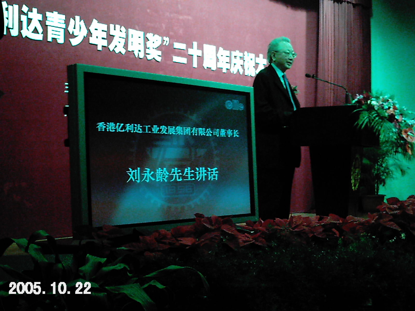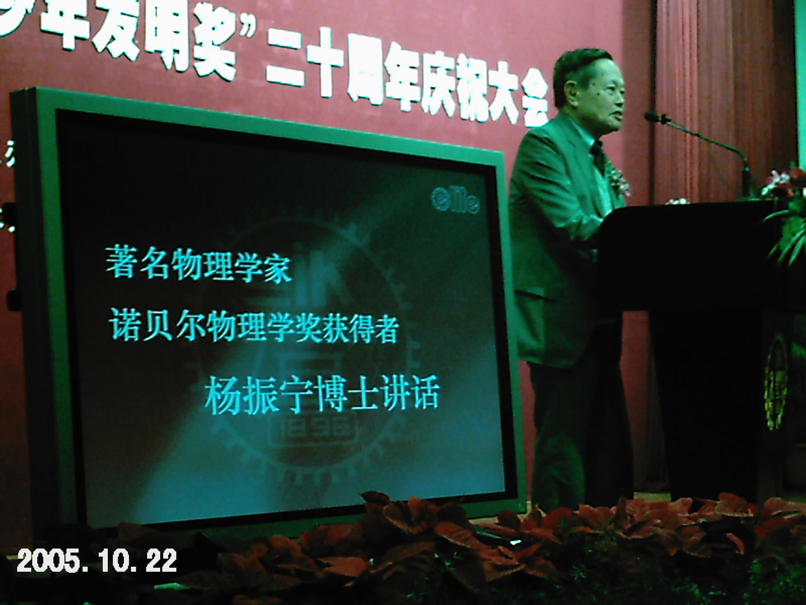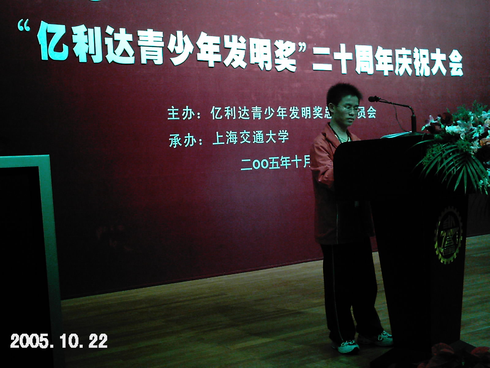 2005年10月22日-23日,“億利達(dá)青少年發(fā)明獎”20周年慶祝典禮暨頒獎大會在上海交通大學(xué)隆重舉行,作為獲獎?wù),我很榮幸地邀請參加這次大會,聽取了著名的物理學(xué)家、諾貝爾物理學(xué)獎獲得者楊振寧教授以及上海交大學(xué)校謝繩武教授、香港億利達(dá)公司董事長劉永齡先生等知名人士的報(bào)告,我也有幸在大會上發(fā)表了我的獲獎感言。