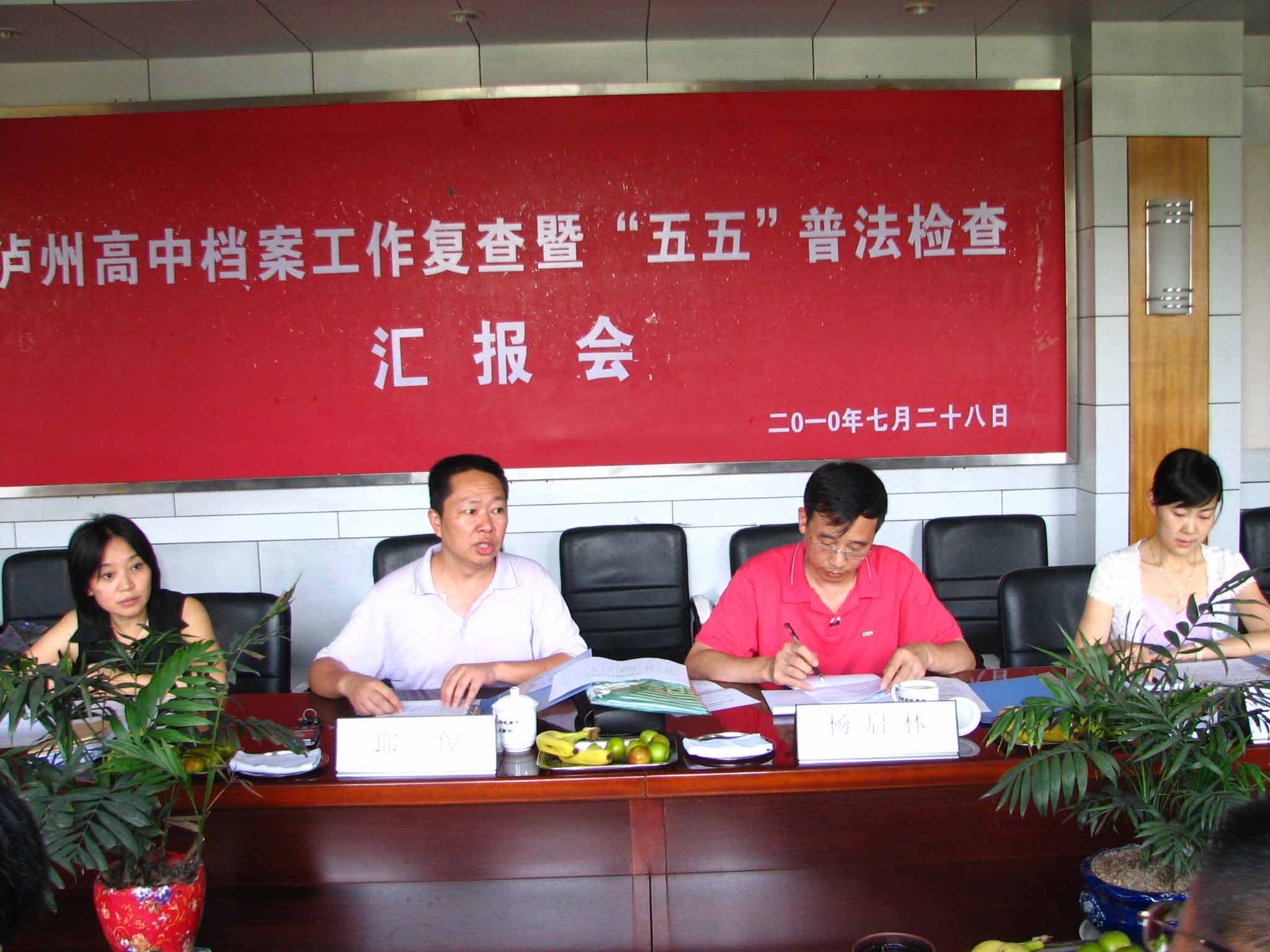 瀘州高中黨總支書記、校長(zhǎng)肖林,副校長(zhǎng)王曉榮、趙曉林、李渝江和各部門負(fù)責(zé)人迎接復(fù)查。復(fù)查組聽(tīng)完有關(guān)工作匯報(bào)后,對(duì)照標(biāo)準(zhǔn)詳細(xì)查看了檔案室的檔案歸案和設(shè)備設(shè)施情況,并打出了98分的優(yōu)異成績(jī)。邱俊在總結(jié)講話中強(qiáng)調(diào),瀘高檔案工作領(lǐng)導(dǎo)非常重視,措施非常有力,效果非常突出,同時(shí)也為今后的工作提出了建議意見(jiàn)。肖林表示,瀘高檔案工作還要在現(xiàn)有的基礎(chǔ)上再提高一個(gè)檔次,這既是對(duì)瀘高的歷史負(fù)責(zé),也是對(duì)瀘高的可持續(xù)發(fā)展負(fù)責(zé)。(古邦倫)