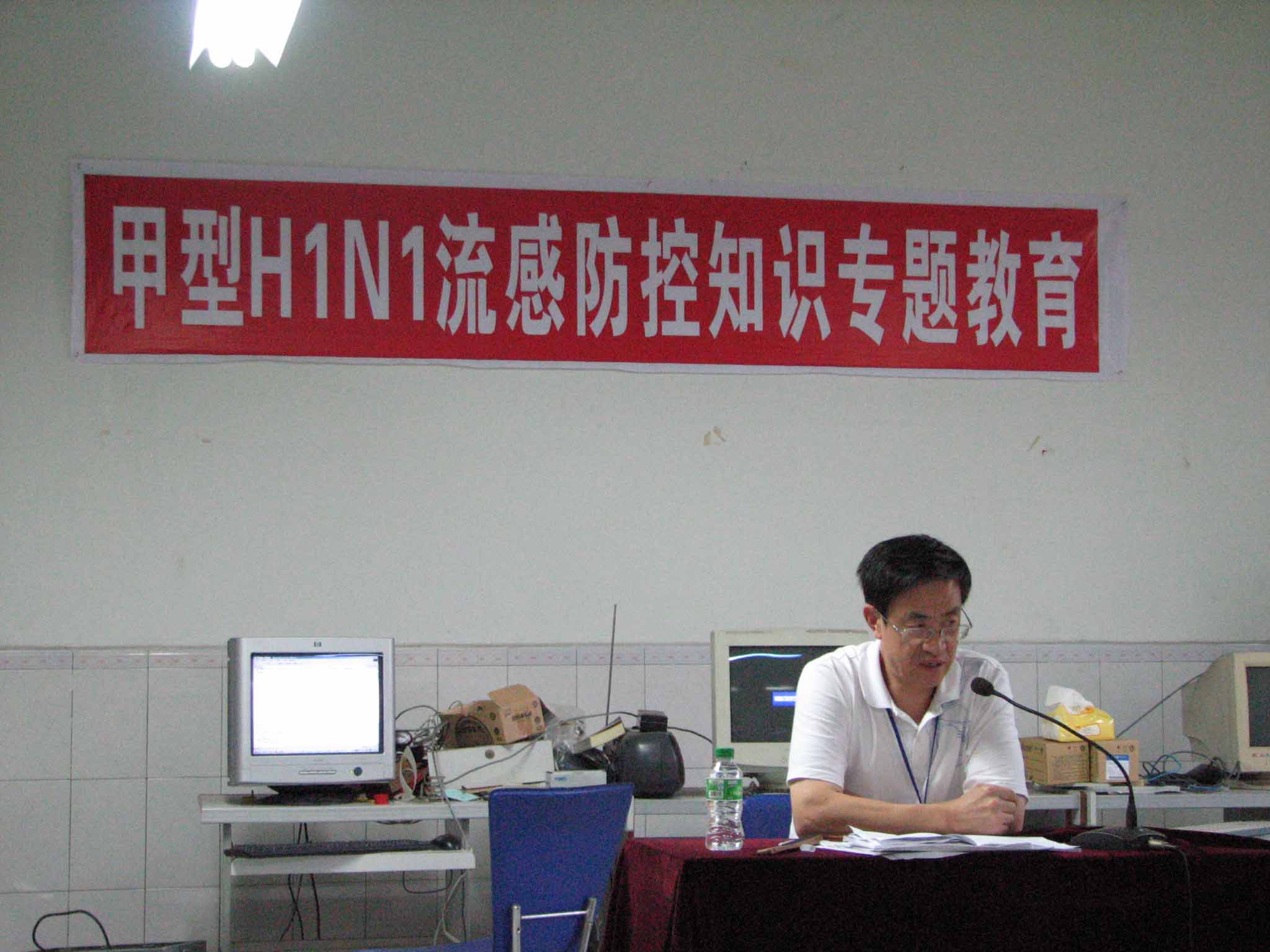 2009年9月15日,副校長(zhǎng)王曉榮向全校學(xué)生作防控甲流的廣播專題講座。