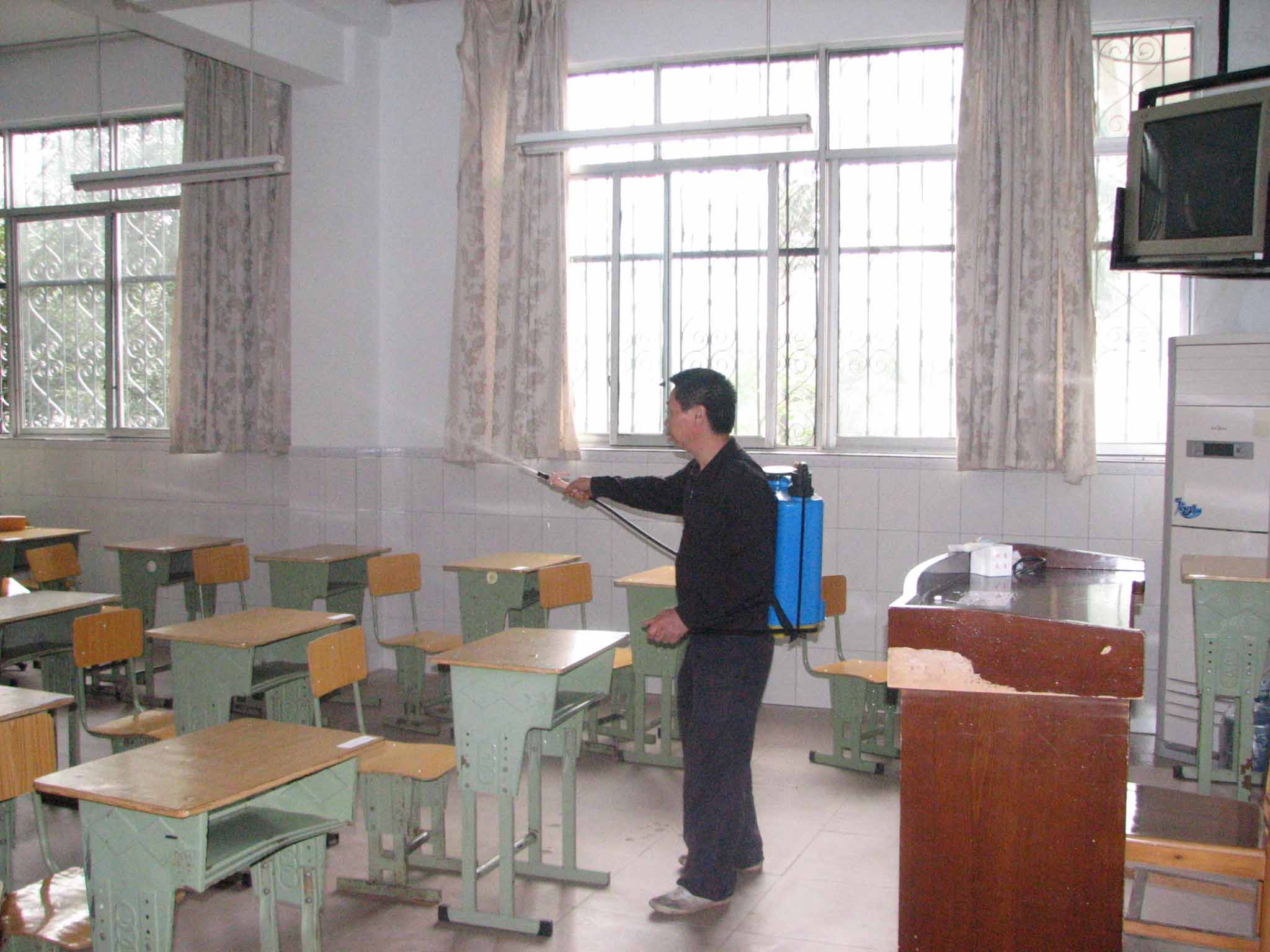 防控甲流期間,學(xué)校每天安排員工對(duì)校園環(huán)境、教學(xué)大樓、辦公大樓、學(xué)生公寓、學(xué)生食堂、公共廁所等進(jìn)行消毒。