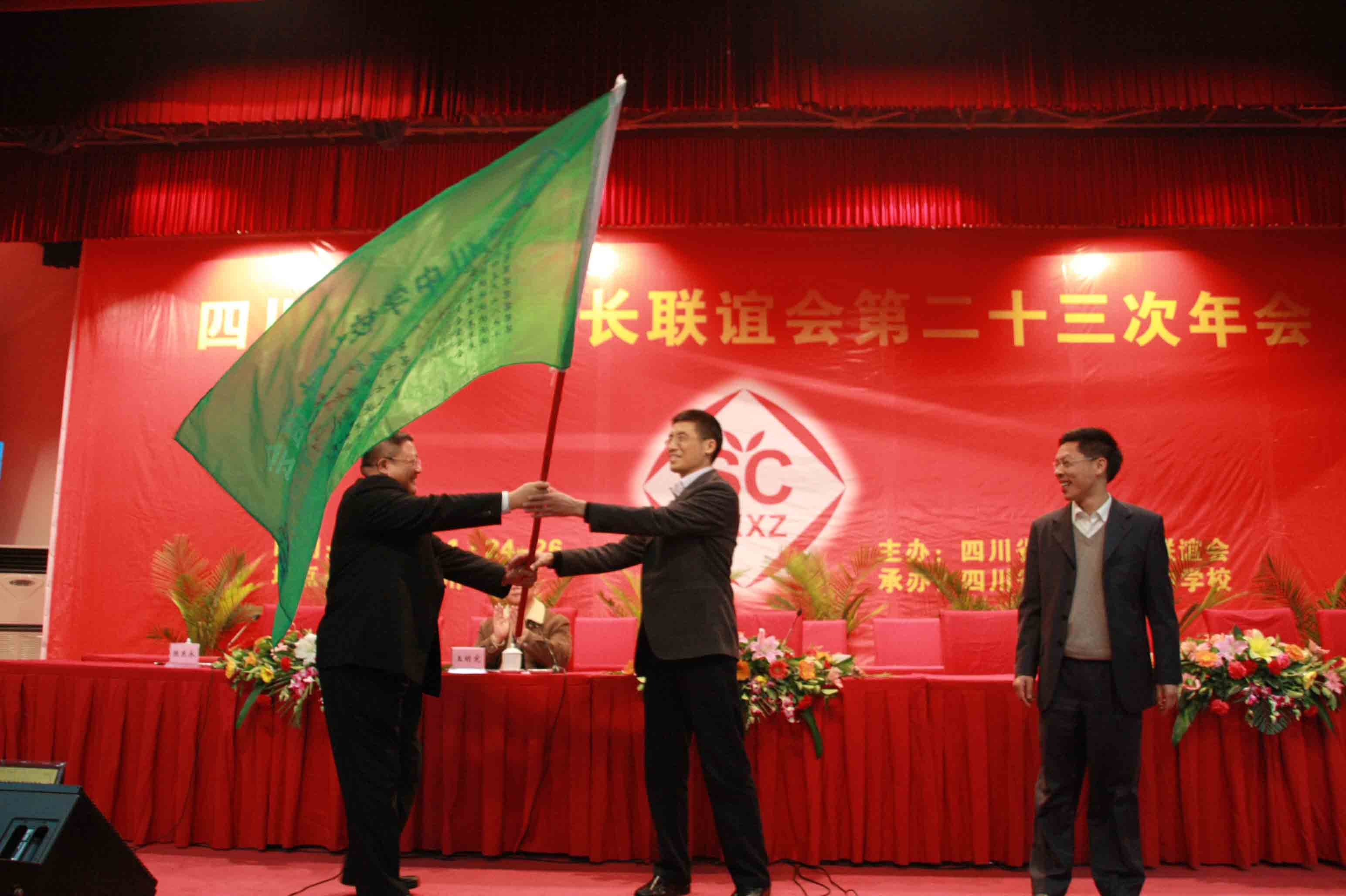 第24次年會(huì)明年于自貢召開(kāi),由蜀光中學(xué)承辦。在會(huì)旗交接儀式上,瀘州高中校長(zhǎng)肖林揮舞著會(huì)旗,通過(guò)第八屆聯(lián)誼會(huì)會(huì)長(zhǎng)陳東永鄭重交給了蜀光中學(xué)校長(zhǎng)甘建情之手。