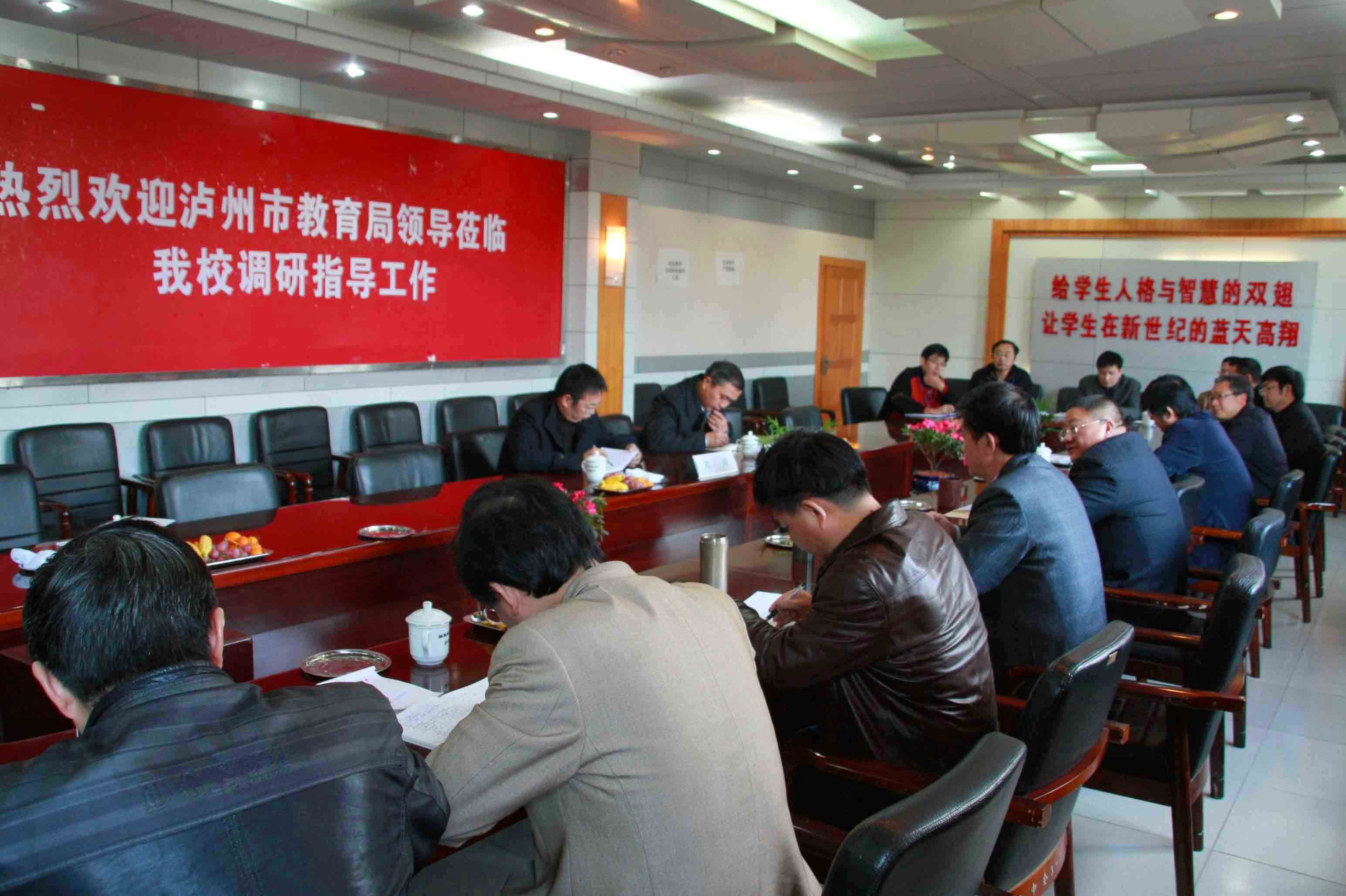 劉濤聽完匯報后認為,瀘州高中對“十二五”發(fā)展規(guī)劃的定位、思路都很清晰,目標明確,任務具體,品位定得高,是對辦學規(guī)律的一次深入探索,瀘高是全市的實際領羊,達到了全省一流辦學水平,這沒有可質疑的。在未來五年中,教育局將大力支持瀘州高中克服物質空間、生源空間對發(fā)展的制約,支持瀘州高中真正辦成現(xiàn)代化教育、標準化教育和優(yōu)質化教育,以增強瀘高對周邊地區(qū)的吸引力,牢固樹立瀘州高中“川滇黔渝教育培訓中心主力”和“全省大學校格局”的辦學地位。