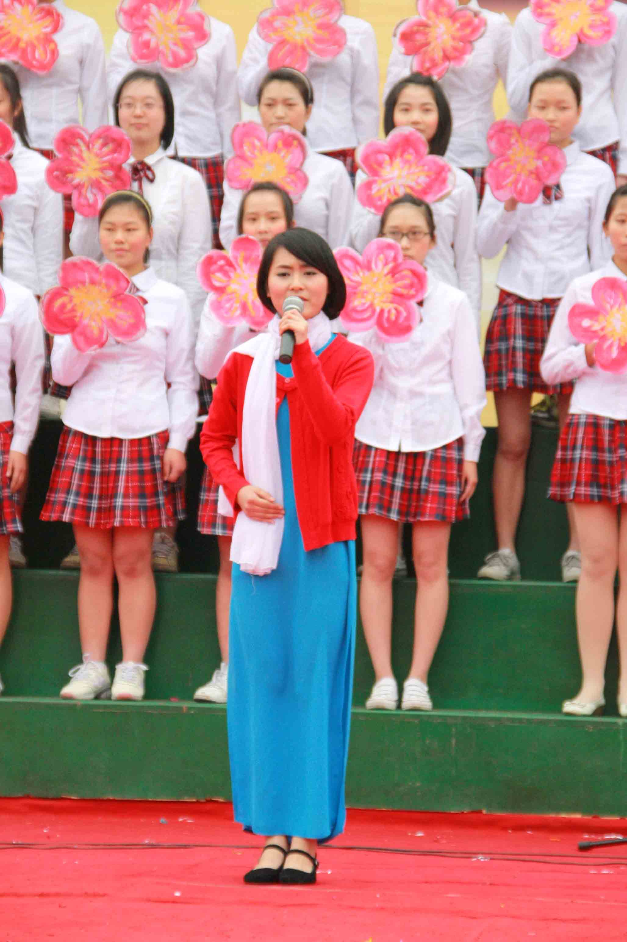 節(jié)目的形式多樣,有大合唱、情景劇、歌伴舞、器樂演奏、詩歌朗誦、相聲表演等,內(nèi)容豐富多彩,有歌頌偉大領(lǐng)袖的、有歌頌革命英雄的、有歌頌祖國的……以學(xué)生表濱為主線,間插教師表演,將演出氣氛推向一個又一個的高潮,贏得場上一陣又一陣的喝彩。