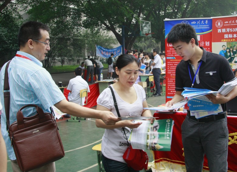6月21日,中國人民大學(xué)、四川大學(xué)等幾十所第一、二批錄取的大學(xué)到瀘州高中設(shè)點開展招生宣傳活動。前來咨詢的高三學(xué)生及學(xué)生家長絡(luò)繹不絕,紛紛了解這些高校所設(shè)專業(yè)、招生計劃等相關(guān)情況。不少學(xué)生、家長還收集了各高校的宣傳資料帶回去閱讀,便于更好地填寫今年高考志愿。(古邦倫)
