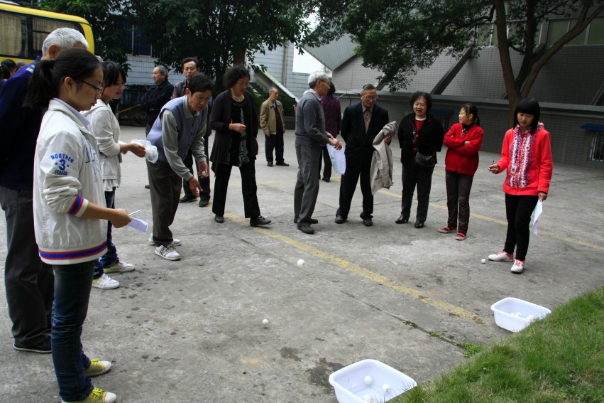 另悉,在本屆運(yùn)動(dòng)會(huì)期間,學(xué)校還舉辦了退休教職工運(yùn)動(dòng)會(huì)。副校長(zhǎng)何明英作開幕式講話,預(yù)祝退休教職們?nèi)〉煤贸煽?jī)。比賽項(xiàng)目的運(yùn)動(dòng)量不大,但非常有趣,如拋乒乓球、投梭標(biāo)、夾玻璃珠等,老人們活力四射,既比拼了技藝,又愉悅了身心。(古邦倫)