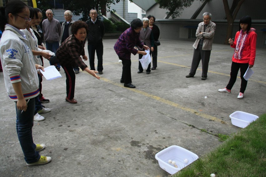 比賽項目的運動量不大,但非常有趣,如拋乒乓球、投飛標、夾玻璃珠等,老人們活力四射,既比拼了技藝,又愉悅了身心。