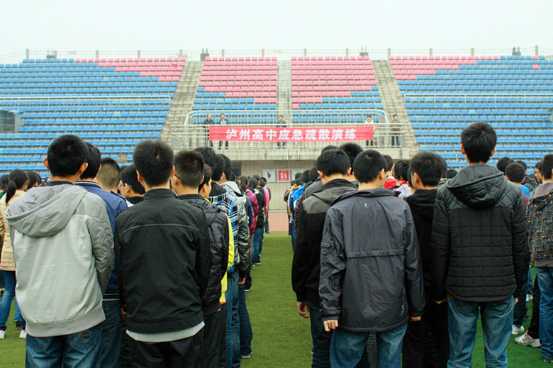 消防應(yīng)急演練。學(xué)校每學(xué)期至少開展兩次消防應(yīng)急演練,從今年開展的情況看,效果非常好。瀘高應(yīng)急演練還與課間操和早操相結(jié)合,在兩操時間,規(guī)定學(xué)生按指定的安全通道迅速跑到操場集合。值周教師、體育教師、班主任、當(dāng)課的科任教師站在指定的崗位負責(zé)通道暢通,防止踩踏事件,督促學(xué)生疏散、集合做到“快、靜、齊”。