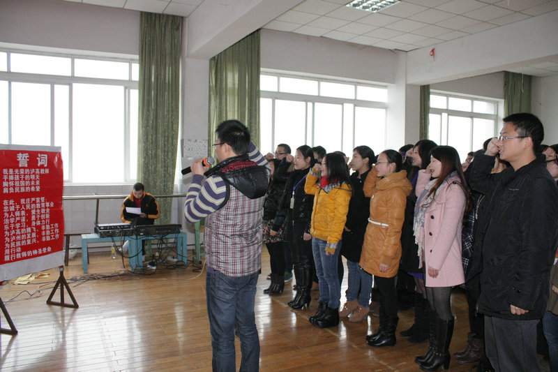 迎新大會上,新團員、新教師莊嚴(yán)宣誓:忠誠于人民的教育事業(yè),為人師表,愛生敬業(yè),治學(xué)嚴(yán)謹(jǐn),勇于創(chuàng)新,身體力行,為瀘高的騰飛辛勤工作,為瀘州的發(fā)展辛勤工作,為民族的復(fù)興辛勤工作,用行動履行教師的神圣使命。