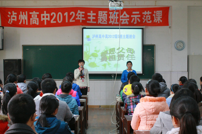 這是瀘州高中2012級5班于12月18日召開的主題班會——感恩父母,勇?lián)熑?。觀摩這個主題班會的有全校年級組長和班主任100多人。