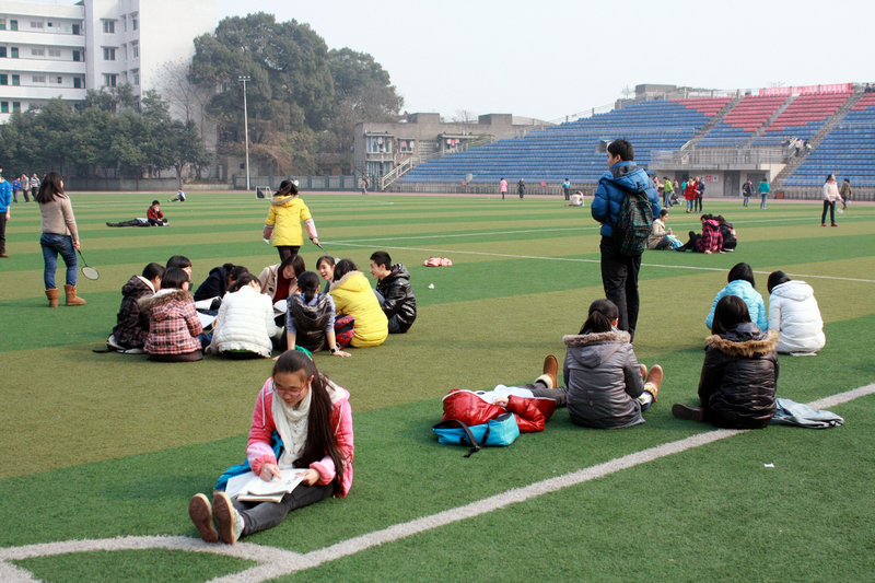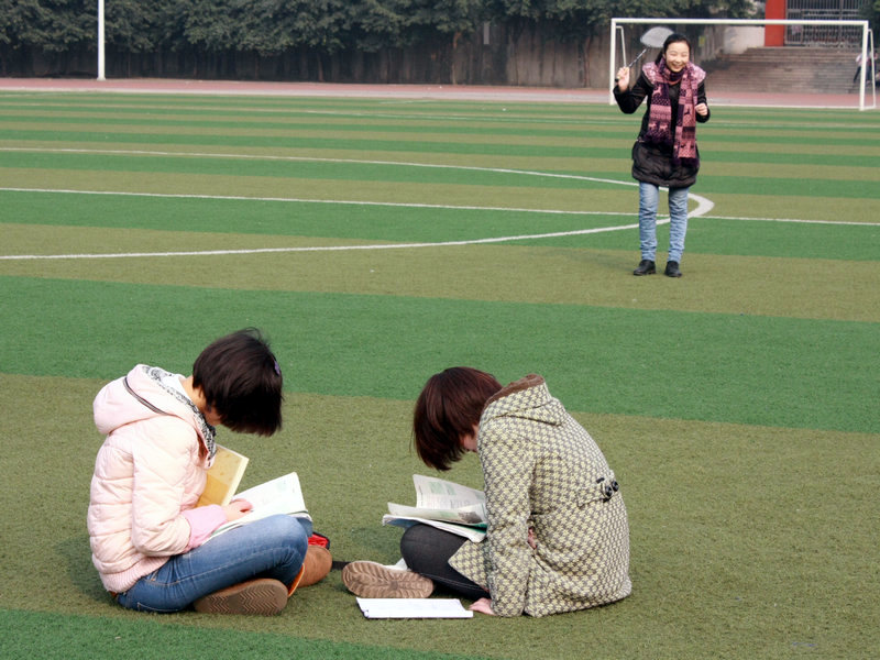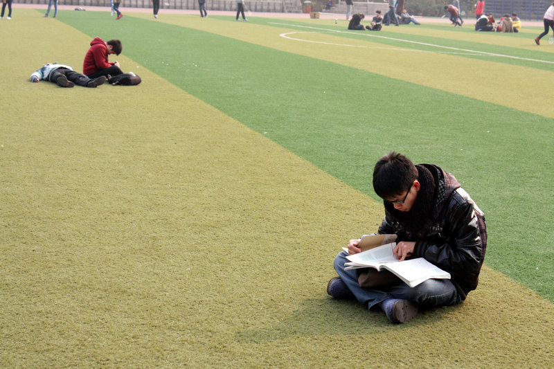 日,瀘州高中的學(xué)生在難得的陽(yáng)光下鍛煉身體,復(fù)習(xí)功課,享受日光浴,滿懷信心迎接期末統(tǒng)考。(古邦倫)