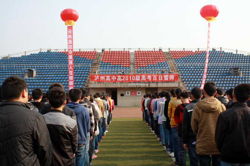 “奮戰(zhàn)百日,我志彌緊……折桂六月,我夢(mèng)必圓?!?/SPAN>3月4日,瀘州高中2010級(jí)2000多名學(xué)生在運(yùn)動(dòng)場(chǎng)上舉起右手莊嚴(yán)宣誓,決心在未來一百天的時(shí)間里心棄雜念,勤學(xué)苦練,決勝六月高考,實(shí)現(xiàn)自己的人生夢(mèng)想。