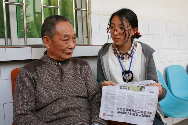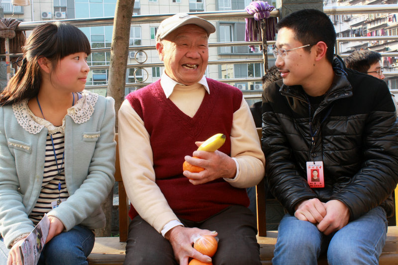 那些老人和殘疾人非常感動(dòng),有的連聲說(shuō):“謝謝你這些娃兒!我們太幸福了!”有的則感動(dòng)得不斷擦眼淚,嘴里卻說(shuō)不出話。在學(xué)生團(tuán)員演唱歌曲時(shí),他們也打著音樂(lè)節(jié)拍高興地伴唱。一些有見(jiàn)識(shí)、有文化的老人還發(fā)表對(duì)時(shí)事的看法,講述他過(guò)去的不平凡經(jīng)歷?;顒?dòng)的互動(dòng)感很強(qiáng),學(xué)生團(tuán)員們很教育。