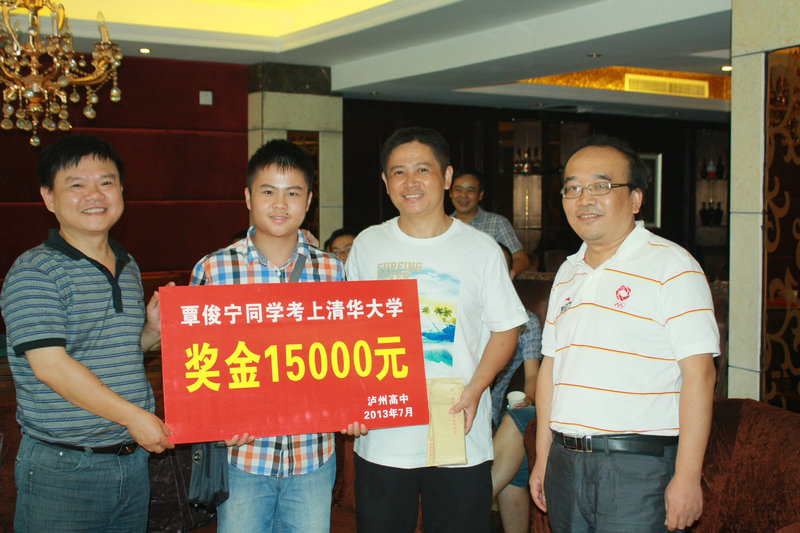 近日,瀘州高中副校李渝江帶隊(duì)赴江安縣城,獎(jiǎng)1.5萬元獎(jiǎng)金放到川南高考狀元潭俊寧手里,祝賀他高考取得優(yōu)秀成績,并被清華大學(xué)錄取。據(jù)悉,今年高考,覃俊寧沉著冷靜,以理科686分的優(yōu)異成績奪得瀘州、樂山、宜賓、自貢、樂山等川南地區(qū)第一名。