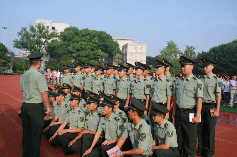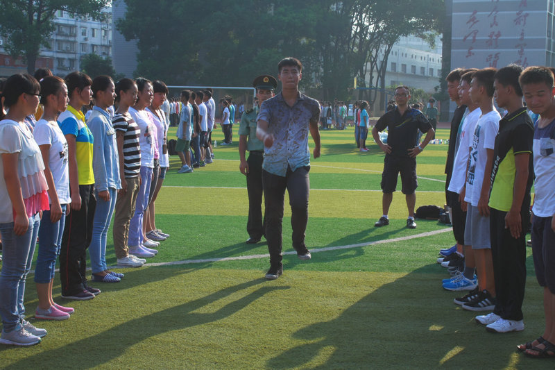 據(jù)王亮介紹,擔(dān)任瀘高軍訓(xùn)的教官都曾選任過班長(zhǎng)骨干,有軍訓(xùn)經(jīng)驗(yàn)和組織指揮能力。在軍訓(xùn)動(dòng)員階段,部隊(duì)向教官提出,要維護(hù)軍人形象,遵守群眾紀(jì)律;對(duì)學(xué)生要嚴(yán)格,但禁止打罵學(xué)生,要文明施訓(xùn);要邊訓(xùn)練邊觀察,發(fā)現(xiàn)有傷病的學(xué)生及時(shí)與班主任溝通,讓學(xué)生退出隊(duì)列休息和治療;要給學(xué)生講防暑措施,防止突發(fā)安全事件發(fā)生。