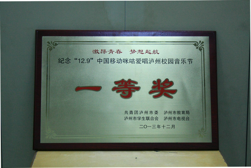 ”中國移動咪咕愛唱瀘州校園音樂節(jié)活動中榮獲一等獎。