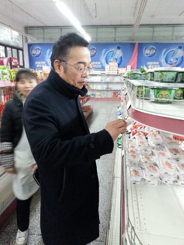 劉濤在校園超市檢查“三無(wú)”食品和過(guò)期食品。