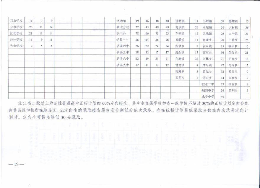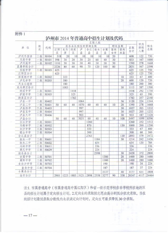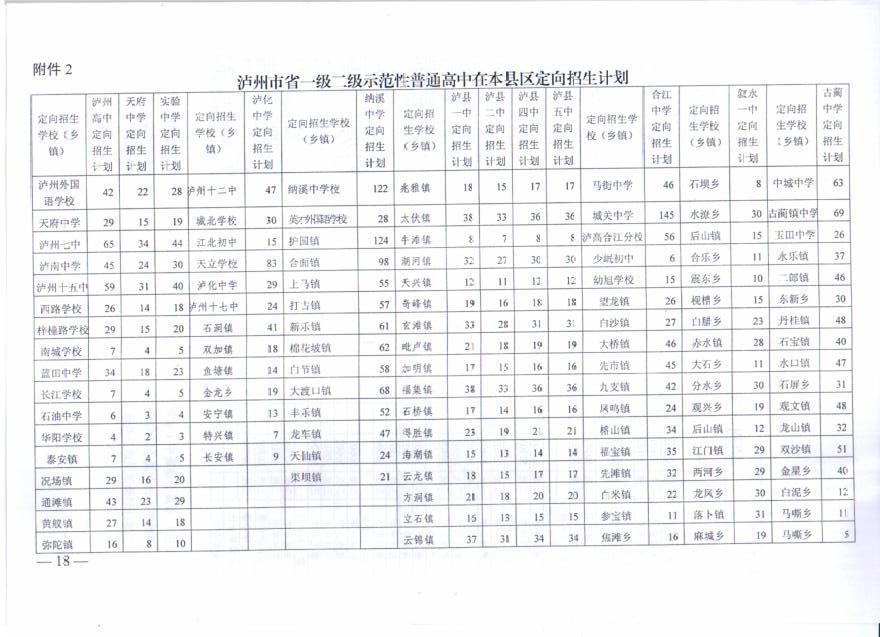 瀘州市高中招生計(jì)劃