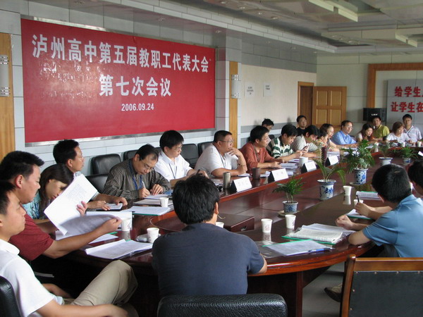 9月24日,瀘州高中第五屆教職工代表大會第七次會議勝利召開。大會首先聽取了校長、總支書記肖林作2006-2007年度上期學校工作報告。肖校長全面地總結了學校上期各方面取得的成績和存在的問題,作并出2006-2007年度上期工作打算,指出本期學校工作的指導思想、目標和措施,尤其提到樹立“學校無小事,事事教育人;學校無閑人,人人教育人;學校無界限,處處教育人”的育人理念,和狠抓教學質量、提高課堂時效的決定等。隨后,代表們圍繞肖校長的報告進行了討論。下午代表們分三組就七項議案展開了充分的討論,最后辦公室羅德強主任作了一份提案報告。此次教代會團結一心、集思廣益,促進了學校工會和行政的工作協(xié)調,解決了一些疑難問題,將推動全校師生同心同德、持續(xù)發(fā)展。 編輯:雷慶珊