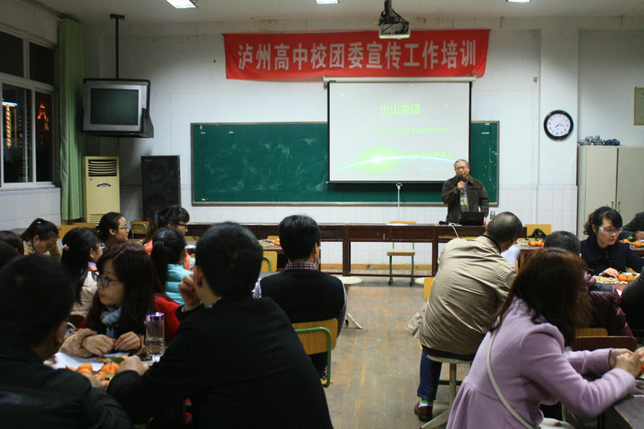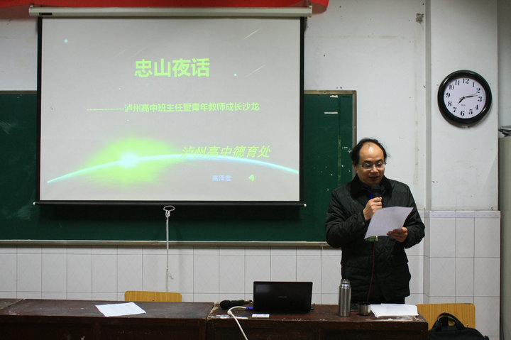11月27日晚,瀘州高中教師活動(dòng)室屏幕上投射出熒光閃閃的大字“忠山夜話——瀘州高中班主任暨青年教師成長(zhǎng)沙龍”,這意味著瀘州高中為教師成長(zhǎng)搭建了新的平臺(tái)。出席沙龍成立儀式的有學(xué)校紀(jì)委書記羅德強(qiáng)、工會(huì)主席王曉榮、德育處副主任高澤宏等,參加儀式的班主任和青年教師近100人。