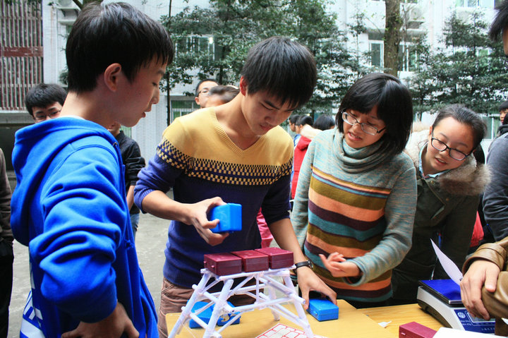 青少年科技創(chuàng)新競賽是科技創(chuàng)新成果和科學(xué)探究項目的綜合性競賽,是針對青少年開展的具有示范性、導(dǎo)向性的教育活動之一。瀘州高中對此項活動高度重視,為了參加好大賽,作為本市第三十屆青少年科技創(chuàng)新大賽紙橋承重比賽的賽區(qū)之一,該校以“發(fā)揮想象,實踐創(chuàng)新”為主題,舉辦了“科技創(chuàng)新周”活動?;顒又校?/SPAN>學(xué)校將比賽方案下發(fā)到高一各班,要求選手們利用A4復(fù)印紙、透明膠、液體膠水,將制作材料變成紙橋,規(guī)定紙橋高度和寬度不得小于10厘米,跨度不少于30厘米,橋墩直徑小于3厘米,重量不大于500克,最后根據(jù)紙橋的承重量比出優(yōu)勝者。方案下發(fā)后,學(xué)生們積極參與,比賽當天,各班學(xué)生拿著精心制作的作品參賽,經(jīng)過激烈角逐,評出4個一等獎,9個二等獎,17個三等獎,并將優(yōu)勝者推薦參加全市總決賽。