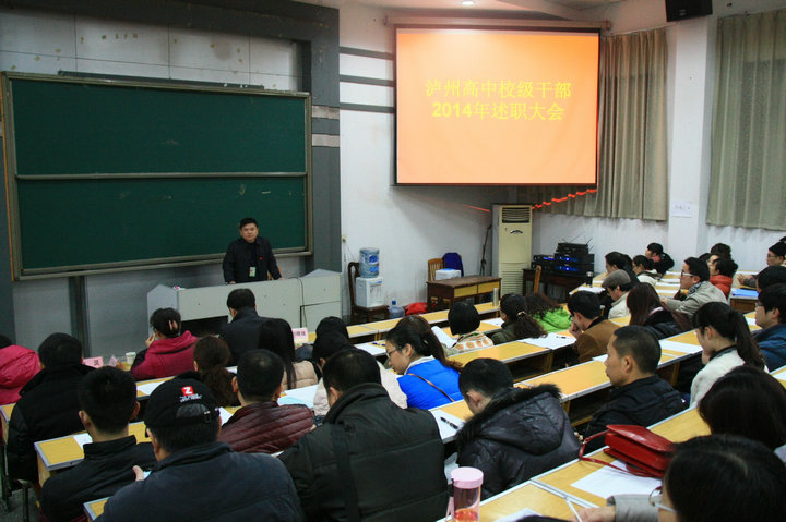 1月27日,瀘州高中舉行校級干部2014年述職大會,市教育局副局長劉曉鋒出席會議并講話。