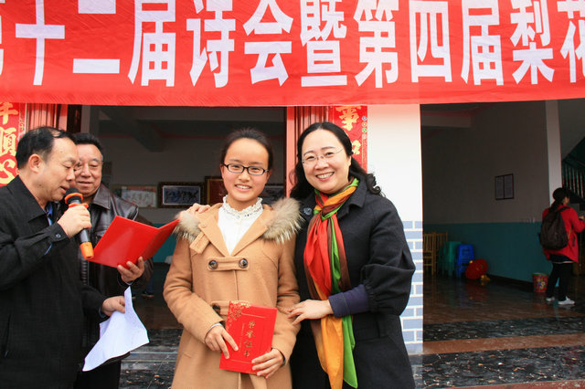 3月7日,“中國(guó)酒城.瀘州第十二屆詩會(huì)暨第四屆梨花詩會(huì)”在江陽區(qū)丹林鎮(zhèn)梨花村舉行,瀘州高中教師宋孟哲、古邦倫帶領(lǐng)高一年級(jí)學(xué)生王怡蘅、梁雪妍、劉毓卓、羅槿瑜參加活動(dòng),所獻(xiàn)9首詩歌均獲得好評(píng),其中王怡蘅現(xiàn)場(chǎng)誦詩獲獎(jiǎng),是中學(xué)生中唯一獲獎(jiǎng)?wù)摺#ü虐顐悾?/FONT>