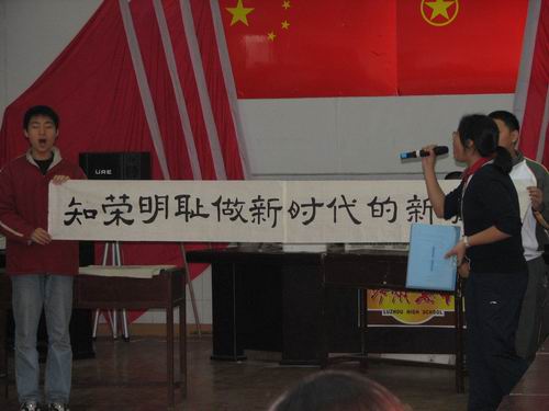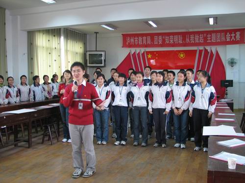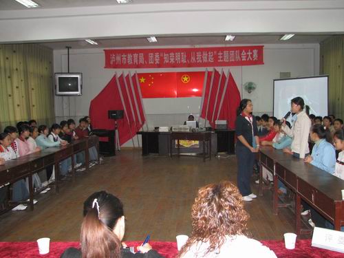 11月16日上午三、四節(jié)課,瀘州高中2009級19班團(tuán)支部和2008級20班團(tuán)支部參加市教育局、團(tuán)市委“知榮明恥、從我做起”主體團(tuán)會大賽,在瀘高團(tuán)委活動室分別舉行了一堂生動的主題團(tuán)會。