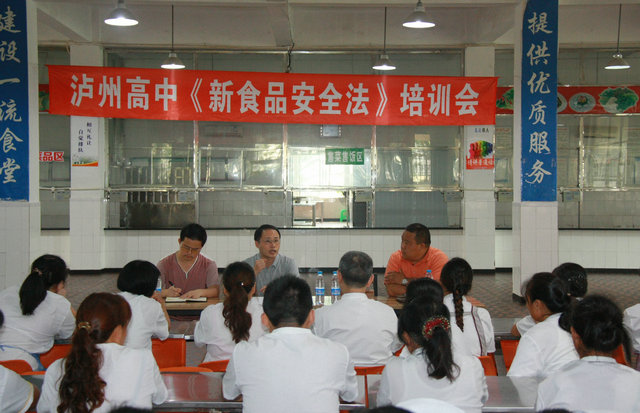 8月23日,暑假尚未結束,瀘州高中聘請江陽區(qū)食監(jiān)局干部許愿對全校100多名食堂和超市的從業(yè)人員、管理干部進行新《食品安全法》培訓。