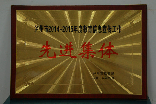 9月28日,在市教育局舉行的2014至2015年度的教育信息宣傳工作會(huì)議上,瀘州高中受到表彰,分別授予學(xué)校和1名通訊員為“教育信息宣傳工作先進(jìn)集體”、“教育信息宣傳工作先進(jìn)個(gè)人”的榮譽(yù)稱號(hào)。(古邦倫)