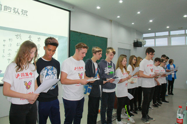 當(dāng)日,正值英國(guó)皮卡特學(xué)校的師生訪問(wèn)瀘州高中。訪問(wèn)期間,他們?cè)跒o州高中學(xué)習(xí)中國(guó)傳統(tǒng)文化,對(duì)中國(guó)的詩(shī)詞楹聯(lián)文化很感興趣。他們向與會(huì)者朗誦了《聲律啟蒙》。周嘯天、陶瑞宇等領(lǐng)導(dǎo)、名家向他們贈(zèng)送了英漢雙語(yǔ)的《聲律啟蒙》書(shū)。