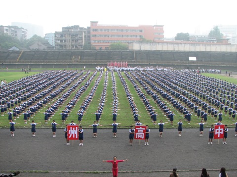 四月二十九日上午10:00-11:00, 在瀘州市體育館,瀘州高中高2009級(jí)1500余名學(xué)生參加由教育部、國(guó)家體育總局、共青團(tuán)中央發(fā)起的全國(guó)億萬(wàn)學(xué)生陽(yáng)光體育運(yùn)動(dòng)瀘州地區(qū)啟動(dòng)儀式。全體同學(xué)著裝整齊,高呼口號(hào),精神抖擻,意氣風(fēng)發(fā),展示了瀘高學(xué)子良好的精神風(fēng)貌,得到與會(huì)各級(jí)領(lǐng)導(dǎo)的高度評(píng)價(jià)。