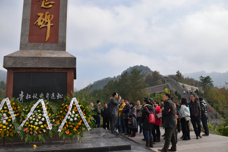 11月27日,瀘州高中近100名黨員開展紀(jì)念紅軍長征勝利80周年活動,就近參觀土城戰(zhàn)役、四渡赤水等紅軍長征遺址。在貴州土城,向青杠坡戰(zhàn)役烈士紀(jì)念碑敬獻花圈、行鞠躬禮,并參觀烈士墓和紅軍醫(yī)院、四渡赤水紀(jì)念館。在活動中,黨員們深受教育,表示要牢記中國革命史,弘揚革命精神,珍惜現(xiàn)在的幸福生活,深入開展“兩學(xué)一做”專題教育,充分發(fā)揮先鋒模范作用,辦人民滿意教育。(古邦倫/文 劉秀琴/攝)