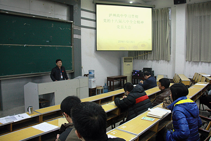 12月5日,瀘州高中召開黨員大會,學(xué)習(xí)貫徹黨的十八屆六中全會精神。學(xué)習(xí)中,與會黨員進(jìn)一步明白要增強(qiáng)政治意識、責(zé)任意識和大局意識,倍加珍惜目前的大好形勢,珍惜當(dāng)前和諧穩(wěn)定的社會環(huán)境。