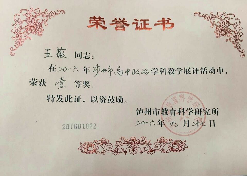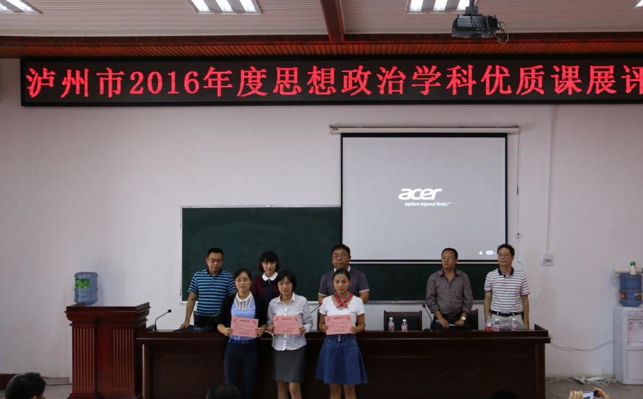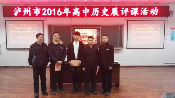 在瀘州市教科所主辦的2016年市青優(yōu)課比賽中,瀘州高中教師代表直屬校參賽,并最終獲得佳績(jī)。其中,劉俊程老師獲市生物學(xué)科一等獎(jiǎng)(第一名),王薇老師獲市政治學(xué)科一等獎(jiǎng),童鑫老師獲市歷史學(xué)科一等獎(jiǎng)。