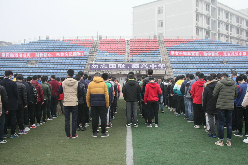 12月13日,瀘州高中運(yùn)動(dòng)場(chǎng)的主席臺(tái)上,一幅“勿忘國(guó)恥,振興中華”的黑底白字標(biāo)語十分醒目,喇叭里傳來哀婉的音樂,德育處主任張宏程整隊(duì)的聲音格外低沉,學(xué)校辦公室主任、歷史老師洪波的表情非常凝重。這是瀘州高中在南京大屠殺公祭日舉行祭悼活動(dòng)的一個(gè)場(chǎng)面,參加活動(dòng)的有高一、高二師生4000多名。