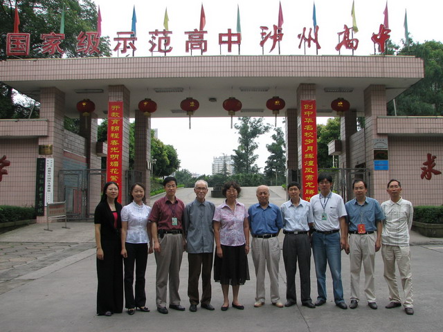 郭庶英女士在市委宣傳部有關(guān)同志的陪同下專門到瀘州高中參觀。曾在中科院工作的楊壯伯老師向郭庶英女士介紹了聯(lián)系中國科學院院長郭沫若的秘書,請郭沫若親筆為該校書寫校名“瀘州高中”的整個過程,郭大姐聽后顯得很激動,又一次打開話匣子,談起了父親郭沫若的很多故事來,并對父親的一生作了總結(jié):父親是學醫(yī)的,但涉足面較廣。他把自然與社會相結(jié)合;外國文學與中國文學相結(jié)合;古代文學與現(xiàn)代文學相結(jié)合,與他涉足面較廣有很大的關(guān)系。父親的一生很不容易,無時無刻都在勤奮用功。座談會結(jié)束,郭大姐在熱烈的掌聲中為瀘州高中揮毫題寫了“瀘州高中好學校”,讓在場的人好生激動。