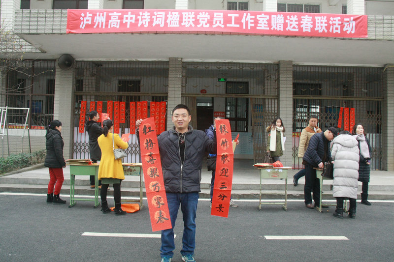 春節(jié)期間,筆者發(fā)現(xiàn),瀘州高中教師的門戶上貼有格律工整、內(nèi)容生動(dòng)、書寫俊美的春聯(lián)。問后才知,這是瀘高學(xué)生書寫贈(zèng)送的,每個(gè)教師一副。許多春聯(lián)的內(nèi)容還是師生結(jié)合地域特色、學(xué)校特點(diǎn)、教師職業(yè)自己撰寫,讓人嘆為觀止。