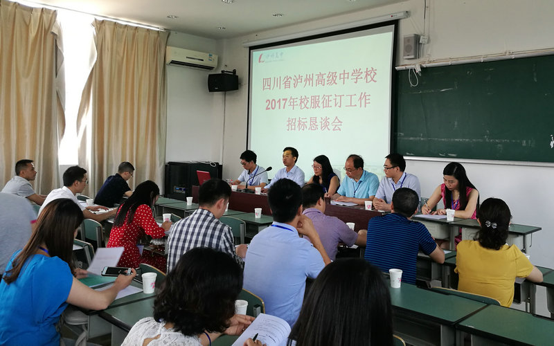 5月29日,瀘州高中舉行學生校服征訂工作招標懇淡會,會議由瀘高家長委員會主任汪志宏主持,瀘高副校長陶俊梅、紀委書記羅德強出席會議,與51家廠家見面。