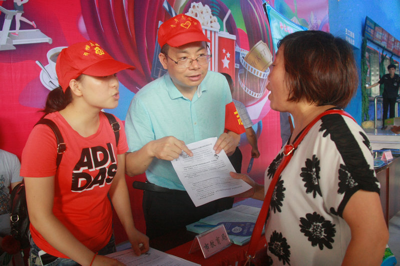 7月29日,瀘州高中領導羅德強帶領教師冒著酷暑到華陽街道辦萬象匯商業(yè)區(qū)向廣大民眾宣傳我市創(chuàng)建全國文明城市工作。