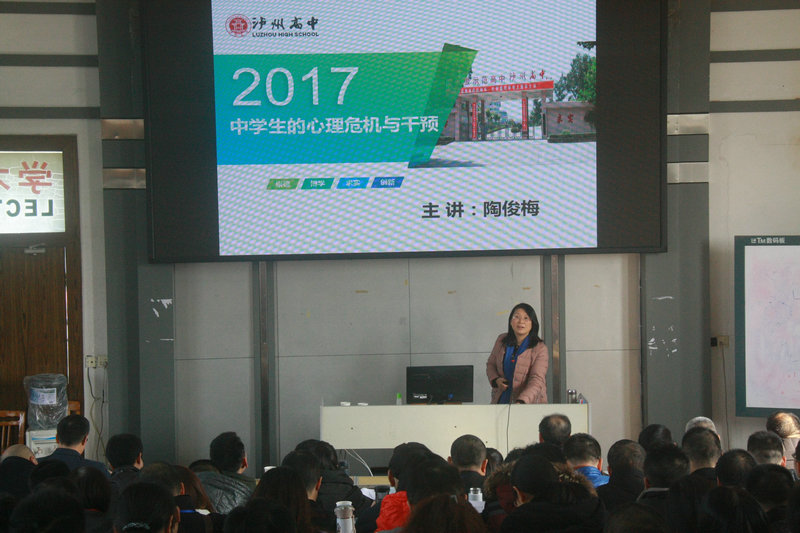 12月19日,瀘州高中舉行德育工作研討會(huì),全校150多名班主、和中層以上干部參加,《為青春護(hù)航》人手一冊(cè)。會(huì)議重點(diǎn)研討學(xué)生心理健康教育問題。作為心理咨詢師,陶俊梅結(jié)合個(gè)案講述了心理危機(jī)形成的原因、哪些孩子容易引發(fā)心理危機(jī)、孩子心理問題有哪些表現(xiàn)、識(shí)別孩子的需要、消極自我形象的建立、積極自我形象的建立、拯救與自我救贖等幾個(gè)問題。