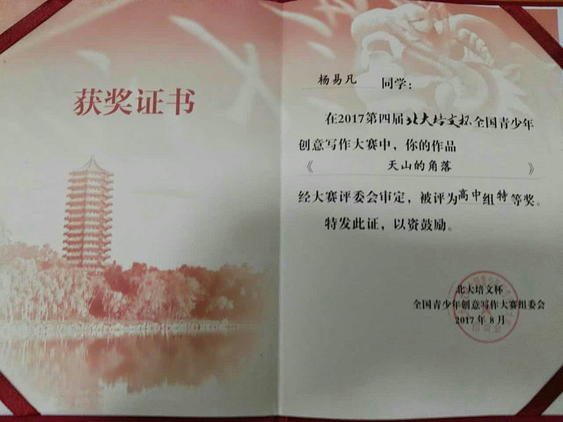 取得北大培文杯創(chuàng)意寫作大賽獎(jiǎng)勵(lì)的學(xué)生,有資格獲得包括北京大學(xué)在內(nèi)的名校自主招生資格。(明安田)