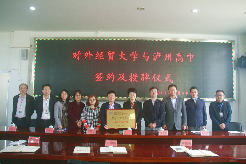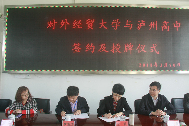 3月20日,對外經(jīng)濟貿(mào)易大學(xué)與瀘州高中簽訂合作辦學(xué)協(xié)議,把給予四川省的第一塊“優(yōu)質(zhì)生源基地”金色牌匾授予瀘州高中。