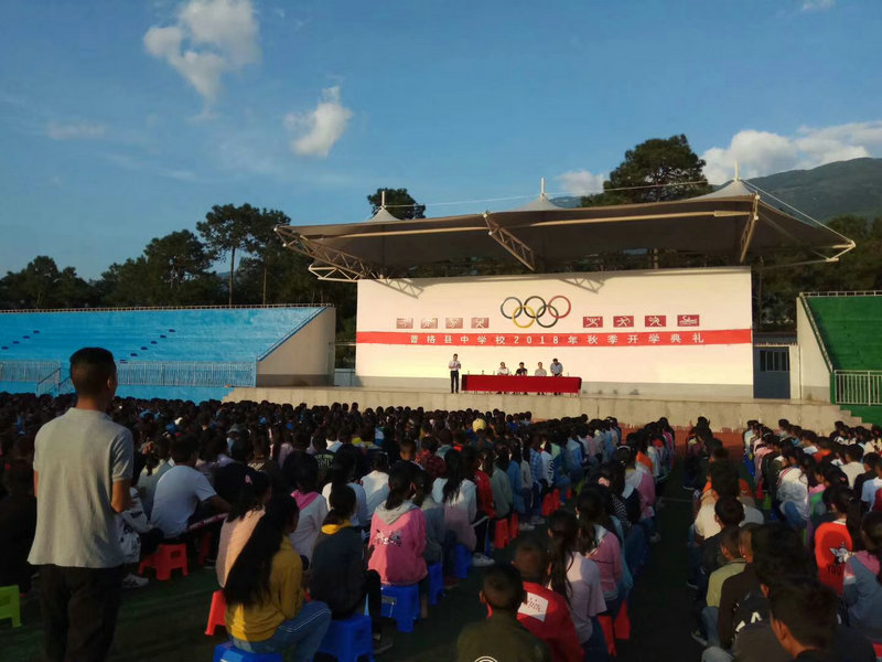 初到學(xué)校,第一反應(yīng)是“危乎高哉”,學(xué)校所處的位置已經(jīng)可以俯瞰縣城,即便如此,卻依然在半山腰,學(xué)校周?chē)歉游《脒B綿的山脈。第二個(gè)感覺(jué)是整潔幽靜,雖然位置偏僻,但校園內(nèi)一幢幢建成不久的教學(xué)樓高低錯(cuò)落,大方整齊的外觀甚至讓人忘了這是一所大山上的學(xué)校;校園內(nèi)外更有成片松林環(huán)繞,山風(fēng)拂來(lái),萬(wàn)壑松濤。第三個(gè)感覺(jué)是現(xiàn)代化,校園內(nèi)建有寬敞整潔的圖書(shū)館,設(shè)施完備的計(jì)算機(jī)室、實(shí)驗(yàn)室,標(biāo)準(zhǔn)大小的籃球場(chǎng)、運(yùn)動(dòng)場(chǎng),教室內(nèi)除卻嶄新的黑板桌椅,還有可開(kāi)展多媒體教學(xué)的“一體機(jī)”,完善的教學(xué)設(shè)備為教學(xué)工作的開(kāi)展奠定了良好的硬件基礎(chǔ)。